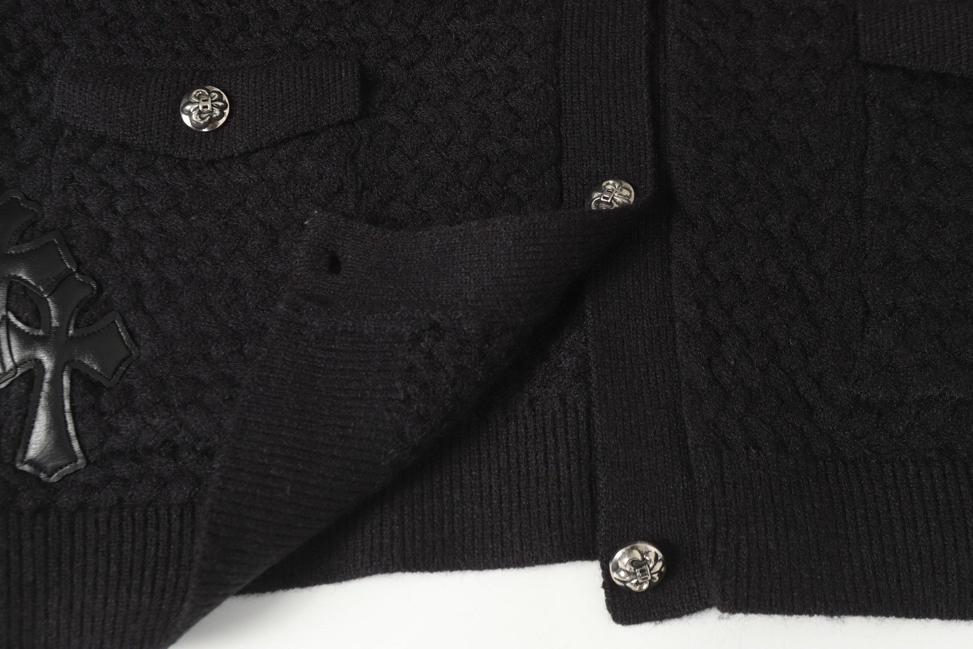 Chrome Hearts Gothic Cross Knit Cardigan - Black Grey Streetwear Jacket 904